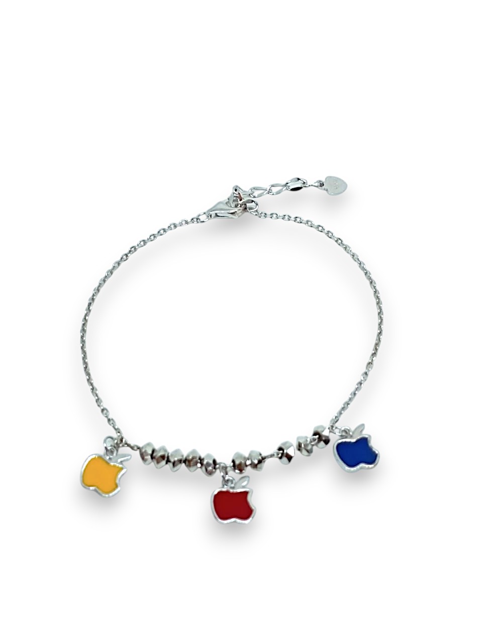 925 Sterling Silver Women Bracelet With colourfull Apple Charms. The Bracelet weighs 2.330 grams It offers a lightweight and comfortable feel to your Wrist. It gives a beautiful, high fashion and unique look to women. Keep it away from perfume, sprays, and water. Preserve your Jewellery in soft cloth pouch when not in use.