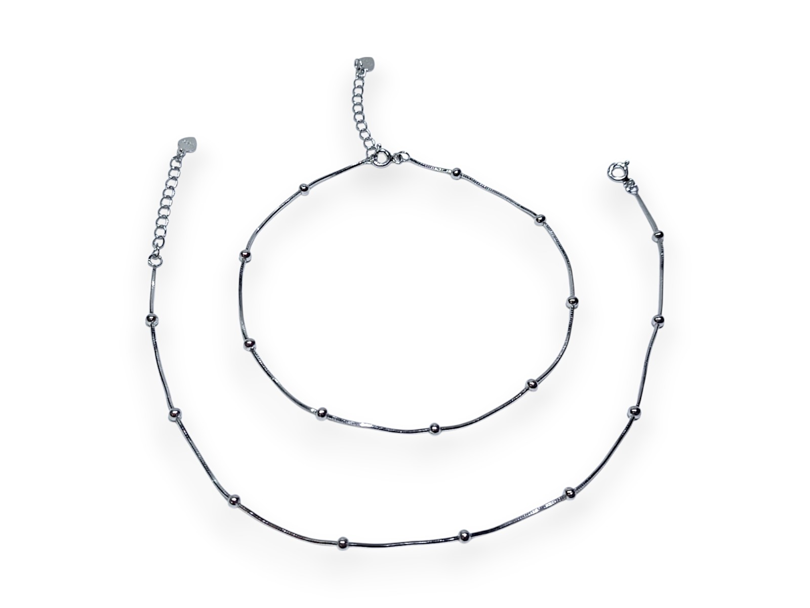 925 sterling designer beaded ball silver chain anklets for women. The anklets weighs 5.840 grams. Silver finish with easy to wear spring-ring clasp. Make a delightful addition to your jewellery collection with this pair of beautiful anklets. It is an ideal pick to glam up your casual look. It is Suitable for all skin types. Keep it away from perfume, sprays, and water. Preserve your Jewellery in the original box or a soft cloth pouch when not in use.
