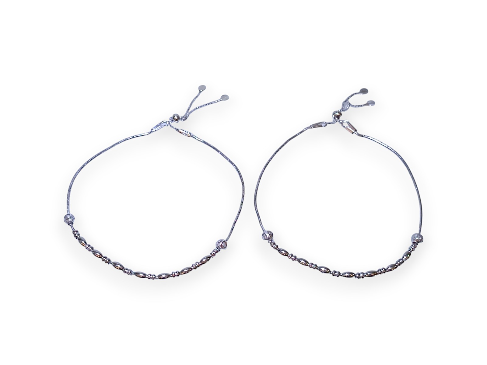 925 sterling designer beaded balls adjustable silver chain anklets for women. The anklets weighs 20.600 grams. Silver finish with easy to wear spring-ring clasp. Make a delightful addition to your jewellery collection with this pair of beautiful anklets. It is an ideal pick to glam up your casual look. It is suitable for all skin types. Keep it away from perfume, sprays, and water. Preserve your Jewellery in the original box or a soft cloth pouch when not in use.
