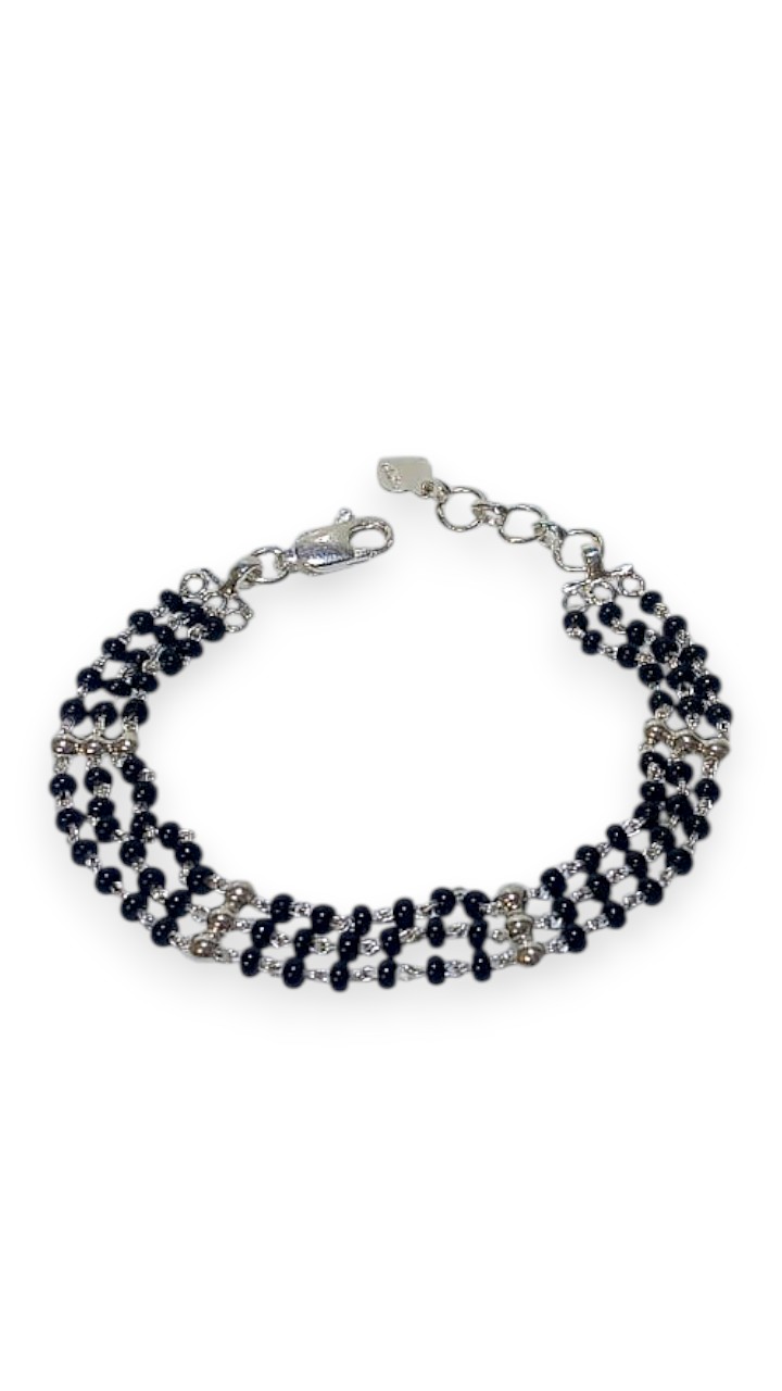 925 Sterling Silver Women Black Beaded Bracelet. The bracelet weighs 7.250 grams It offers a lightweight and comfortable feel to your Wrist. It gives a beautiful, high fashion and unique look to women. Keep it away from perfume, sprays, and water. Preserve your Jewellery in soft cloth pouch when not in use.